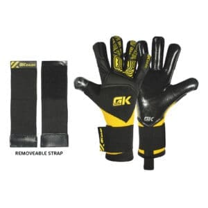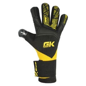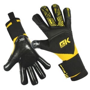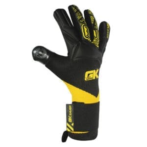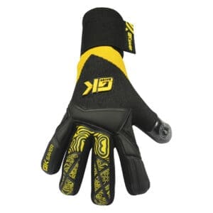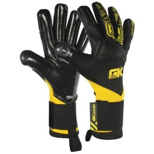 The GK Saver “ Knit Pro Yellow/Black ” Football Goalkeeper Gloves boast a German latex Contact Palm for durability and exceptional grip. The thumb wrap on backhand offers reliable impact protection and comfortable, adjustable wear. The wrist-around wristband ensures comfort and adjustability. Featuring a striking Yellow/Black design and the perfect Grip control system.